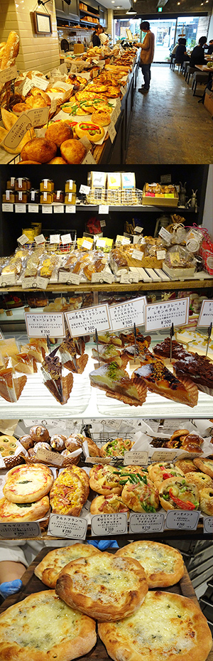 店づくりについてのコンセプトを伺うと、「オープンキッチンにすることと、焼きたてを提供すること」という。中目黒店は厨房でスタッフが忙しく働いているところが見えるが、次々とパンやケーキが出来あがる様子が見えるのはワクワクする。