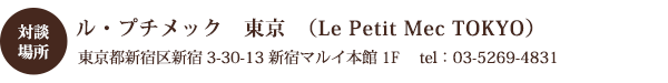 営業時間/11:00 ~ 21:00(日祝は20:30まで) 定休日/新宿マルイ本館の休業日に準じる http://www.le-petitmec.co.jp/