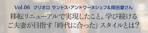 - いつも新しいアイディアをお持ちのサントスシェフと、一緒にお店を支える愛さん。お二人の名コンビと、多くのスタッフの方々との連携で、「クリオロ」は、これからもますます素敵なお店になっていかれることでしょうね!今日はどうもありがとうございました。
