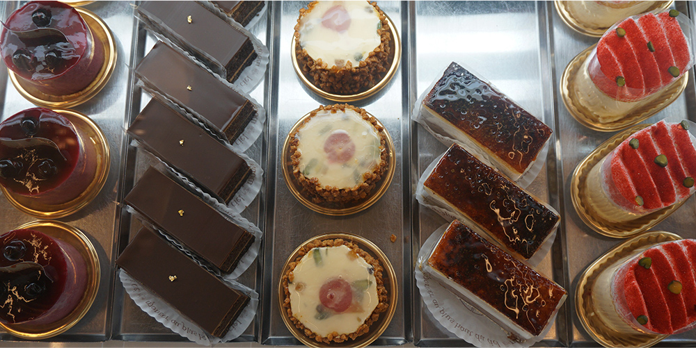 - こんにちは。こちらの店名は、正式には「monter au plus haut du ciel(モンテ・オ・プリュ・オー・デュ・スィエる)」といって、フランス語で“空高く舞い上がる”という意味ですが、お客様には「パティスリー モンプリュ」の愛称で親しまれているので、今日はその呼び方にさせていただきますね。もう15年目でいらっしゃるとは、あっと言う間ですね。