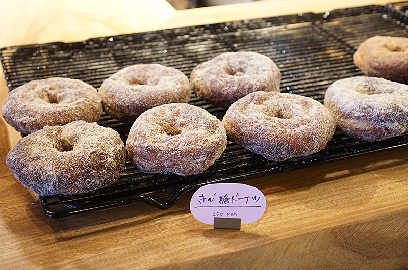 ドーナツは砂糖をまぶしたシンプルなものが中心。見た目の派手さはありませんが、王道的なシンプルさが大人心をくすぐります。1番人気はベーシックな「きび糖ドーナツ」です。優しいきび糖の甘味が老若男女を問わず支持されています。