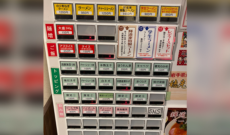 家系ラーメンの特徴である、「麺の硬さ」「味の濃さ」「油の量」を選べる点は、こちらでも共通。インバウンド需要を意識して、英語のキャプションをつける店も増えたが、こちらでは中国語もつけている。