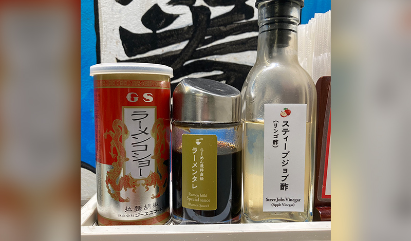 豊富な卓上調味料から、リンゴ酢やラー油などを使い、味変のバリエーションが多いのも嬉しいポイント。
