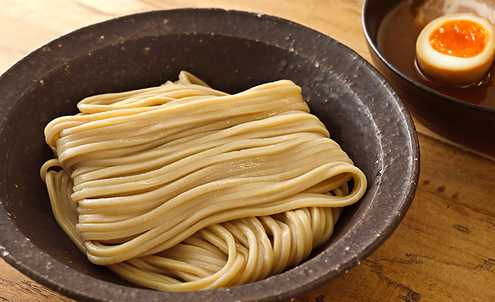 麺自体の味わい深さがある、特徴のある麺になります。多加水でも低加水でもおいしい麺ができます。
