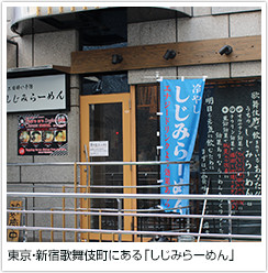 日本を代表する繁華街、新宿歌舞伎町。その中心地に店を構える「しじみらーめん」の店頭には、こんな垂れ幕が掲げられています。