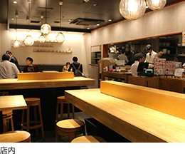全面ガラス張りの洗練された店構えは女性も入りやすく、従来の「立ち食い蕎麦」とは一線を画します。また、店内デザインはもちろん、器もオリジナルの有田焼を使用するこだわりようです。