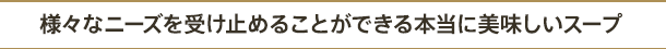「多くのお客様に喜んでいただきたい、というのが根本にあります。店のオススメはこれ、と押し付けるのではなく、いろいろな味を楽しんでいただく。そのためにも、様々なニーズを受け止めることができる本当に美味しいスープをこれからもつくり続けていきたいと思います」