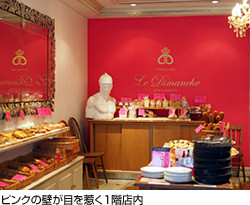 ブティックをコンセプトイメージとした店内は、鮮やかなピンクの壁面が目を惹く欧風モダンな空間です。そんな雰囲気に溶け込むようにパンの見た目も可愛いく、それぞれがお洒落な宝石のように、センスよく並べられています。