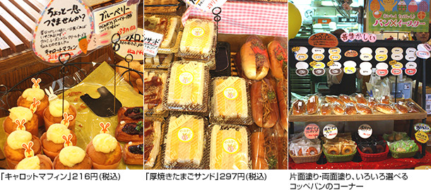 例えば、「たまごコッペ」のPOPには「一度食べたらはまりますよ」。こう断言されると、確かに食べてみたくなります。たくさんある商品の中で、ところどころにキャッチーなPOPを散りばめるのがポイントで、掲示前から売れ行きは1・5倍に伸びたとか。