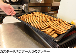 取材当日の朝に焼きあげたという四角いクッキーは、生地にカスタードパウダーを混ぜたもの。サクサクの食感で、ほんのり甘いカスタードの香りがします。