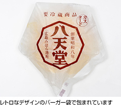 「ひんやりと冷やしていただく、新しい食感の「くりーむパン」で全国的に知られるようになった「八天堂」。もとは昭和8年広島みはら港町に創業した和菓子店「森光 八天堂」で、後にパンを手がけるようになり、2009年に「八天堂」としてスイーツパンの専門店に。手づくりにこだわる製法で1つひとつを丁寧につくりあげ、全国にある販売店へと冷蔵で配送しています。