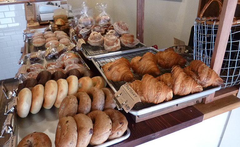 LANDと言えば外せないのが、きめ細かくしっとりしたベーグル。旅先で食べたベーグルに驚いたという吉川さん。「日本のパサパサしたイメージとはまったくちがうものでした。ウチの店ではシナモンやレーズンなどのフレーバーを使用したものを、常時4~5種類置いています」