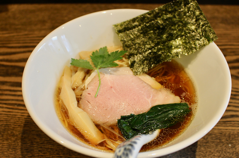 スープは煮干しを使ったスッキリ&シンプルな味わい。10層のスープに20種類ほどの醤油と塩などでつくったタレを合わせることで、優しく奥行きのある味わいが生まれます。