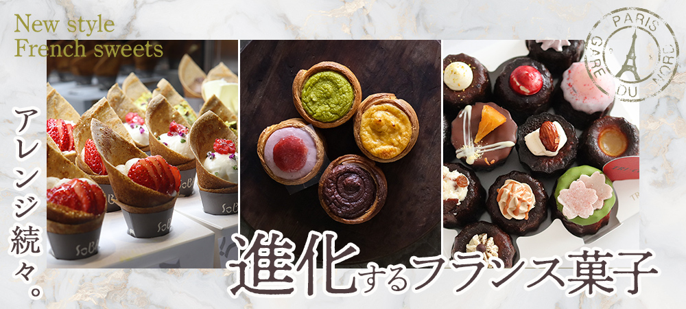 今回は進化系フランス菓子を提供している3店舗を紹介しました。共通するのは、製法や材料を徹底的に追求したうえで、独自のアレンジを加えているということです。守るべきところはしっかり守りながら、新たな視点を加える…まさに伝統と革新のコラボレーションです。皆様のお店でも、商品開発の参考にされてみてはいかがでしょうか。