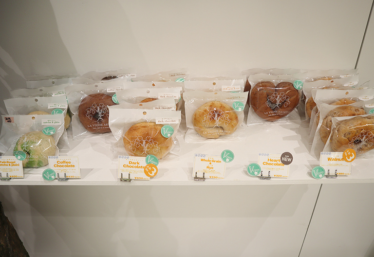 店名の由来でもあるブドウの木がディスプレイされた店内には、さまざまな素材を練り込んだベーグルが並んでいます。オーナーシェフの池田三香子さんに同店のベーグルについてお話を伺いました。