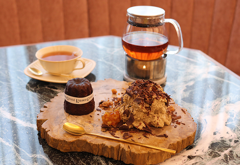お店は1階と2階にスペースが分かれています。1階は、焼きたてカヌレを気軽に購入できるイートインスペース付きのテイクアウトカウンター。2階は、「クラマエ・カヌレ」の素材をさらにグレードアップした「グランカヌレ」を提供するカフェです。