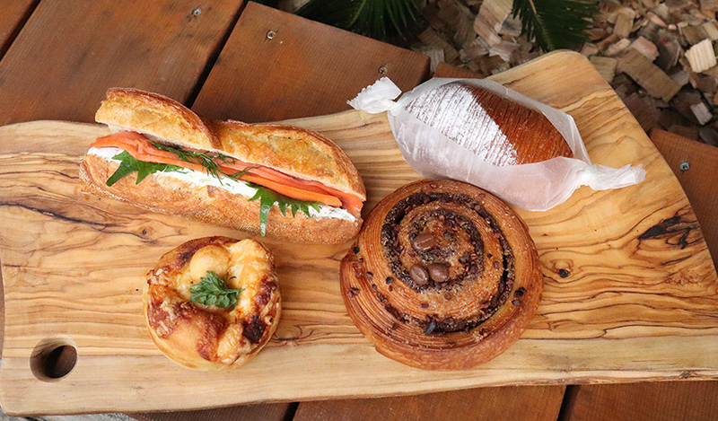 「サンド系は、つくり込みすぎて料理的になってしまうよりも、もっとシンプルに、余計なものは入れずに素材の味を楽しんでいただけるようにしています。『サーモンディル』 はスモークサーモンとディル入りクリームチーズと野菜だけ。パンのおいしさには自信がありますから、あとはよい素材選びです。自分で味と香りを確かめて選び、素材へのリスペクトを大切にしてパンづくりをしています」(五十嵐さん)。