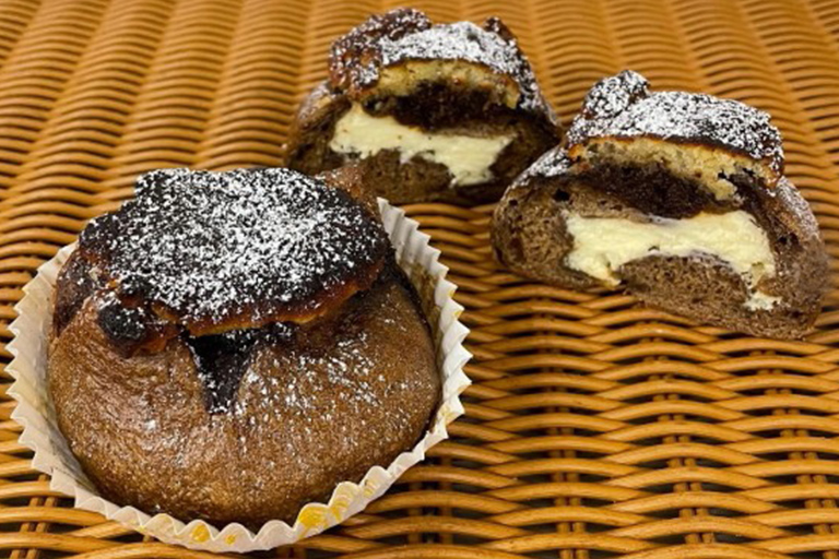 フィリング巻き込み系は、芳ばしい韓国よもぎ生地にあんこを巻き込んだ「よもぎ」、ほろ苦いチョコレートフィリングをココア生地にたっぷり巻き込んだ「チョコレート」などがあります。濃厚なチョコ感と甘さを楽しめる「チョコレート」は、表面に振りかけたザラメ糖がキラキラとしてキュートな人気アイテムです。
