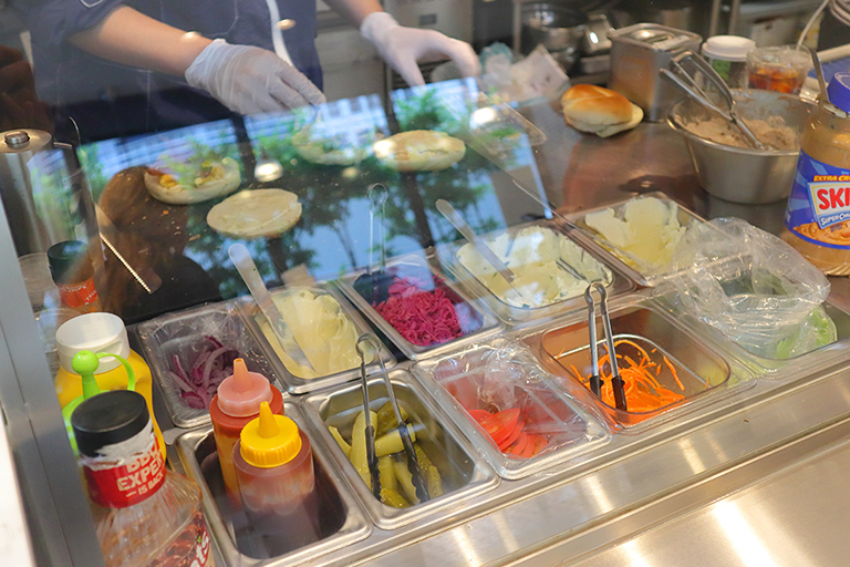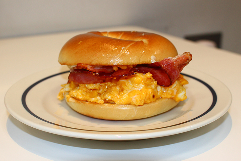 ベーグルサンドは、迷わずオーダーできるように決まったメニューが8種類あるほか、スプレッドや具材を自由に選んでカスタマイズも可能です。朝の開店時からベーグルや具材が売り切れるまでオーダーできます。
