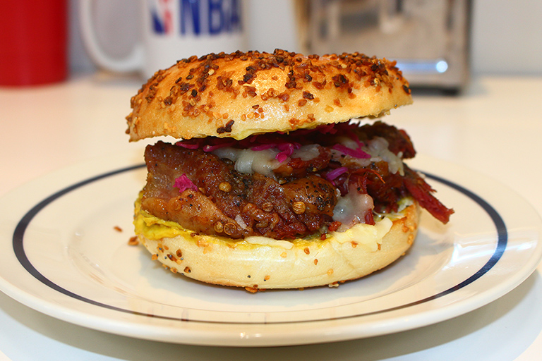 サンドイッチのメインの具材で、ローストビーフ、パストラミビーフ、プルドポークはいずれも自家製。パストラミビーフは1週間かけて塩とスパイスに漬け込み、燻製をかけています。魚系では、スモークサーモンのほか、期間限定でスモークニシンのサンドイッチも登場しています。サンドイッチメニューはお好きなベーグルをチョイスして、どれも具材たっぷりでグルメバーガーのようなごちそう感とボリューム感を楽しめます。