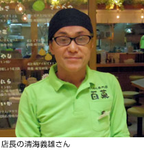 明るい雰囲気の店内で快活に答えてくれたのは、「たんめん専門店 百菜」店長の清海義雄さん。緑色の制服や緑の座席など、店内には野菜を連想させ、女性も入りやすくなる工夫が随所に込められています。