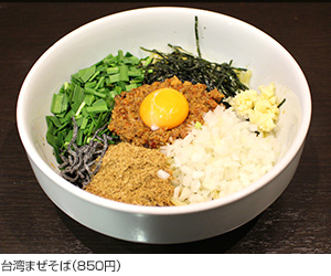 「常に考えているのは、お客様にどうやったら喜んでいただけるか、ということ。何か新しいメニューを始めたいと思ったときには、世間では何が流行っているのかの情報を収集して、自分でも食べ歩いて、自分なりに整理して出すようにしています。その中で、とにかくお客様に食べてもらいたい、是非この味を知ってもらいたいと思ったのが『台湾まぜそば』でした」。