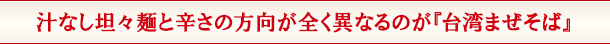 「同じ汁なし・まぜそば系であり、辛い特徴がある二つのメニューですが、辛さの方向性が全く異なるので、うまく共存して、お店の底上げをすることができています。面白いことに、常連さんでも、担々麺を頼む方と台湾まぜそばを頼む方はキレイに分かれますね」。