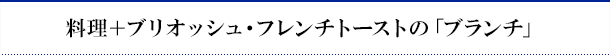 同店は、一般的なランチタイムより長めの、10時~15時30分の時間帯にブランチを提供しています。「日本では、<ブランチ>という言葉は知られていても、食文化としては未成熟です。そこで、明るく開放的な空間に身を置いて、ゆっくり時間をかけて食事を楽しむ、ライフスタイルとしてのブランチを提案しています」と語ってくれたのは、同店を運営するマーサーオフィス(株)のアートディレクター坂本耕一さん。「イメージとしては、マリンテイストが漂うリゾートホテルの朝食。しっかり食べごたえのある料理に合わせるものとして、ブリオッシュのフレンチトーストを選びました」