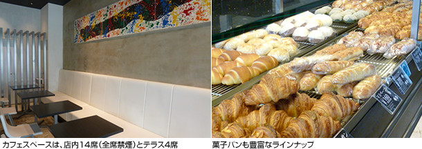 社長は美容院も経営している、美的センスの優れた人。黒やメタリックを使ったモダンな店の内装、持ち帰り用袋のデザインなどに、その力を発揮しています。これまでのパン屋さんになかった雰囲気も、この店の特徴です。