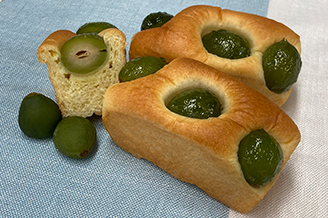 甘さ控えめのしっとり口溶けの良い生地にクリームチーズフィリングを巻き込み、グリーンピーチ(若桃)を丸ごとのせました。桃のさわやかな酸味が広がるブリオッシュです。